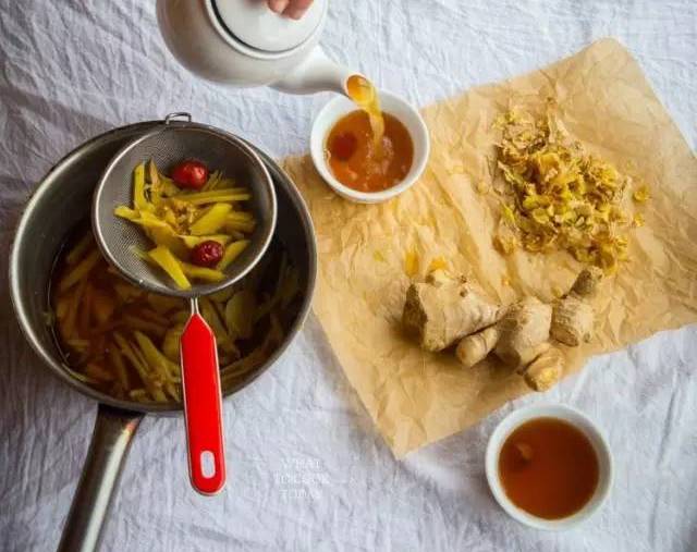 做法:生姜去皮削成丝,加入红枣、红糖和水煮开即可 =V,mtT