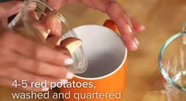 1. 在可放入微波炉加热的马克杯中放入土豆。