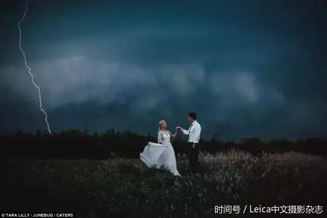 <jV,VKL# 在这张不同寻常的照片中,一道闪电闯入毫无防备的新娘新郎的二人世界。