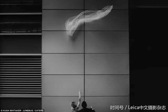 {b 新郎新娘一同努力追回被风吹走的头纱。