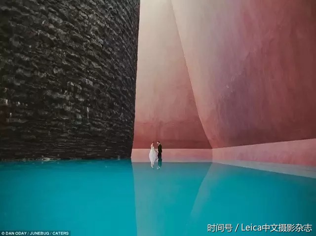 E42)93~C 这张绝妙的照片使这对新人看起来像是在水上行走。