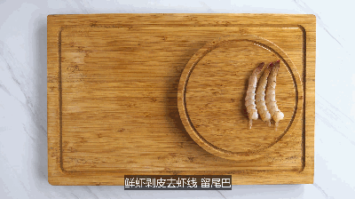 1.把虾去头剥壳,留下尾部的一小段壳,然后剪开虾,去虾线