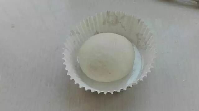 7.包好馅料,捏紧收口,放入圆形纸模具;