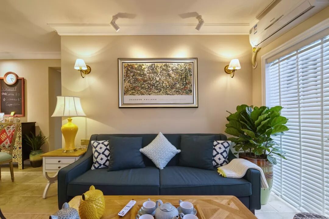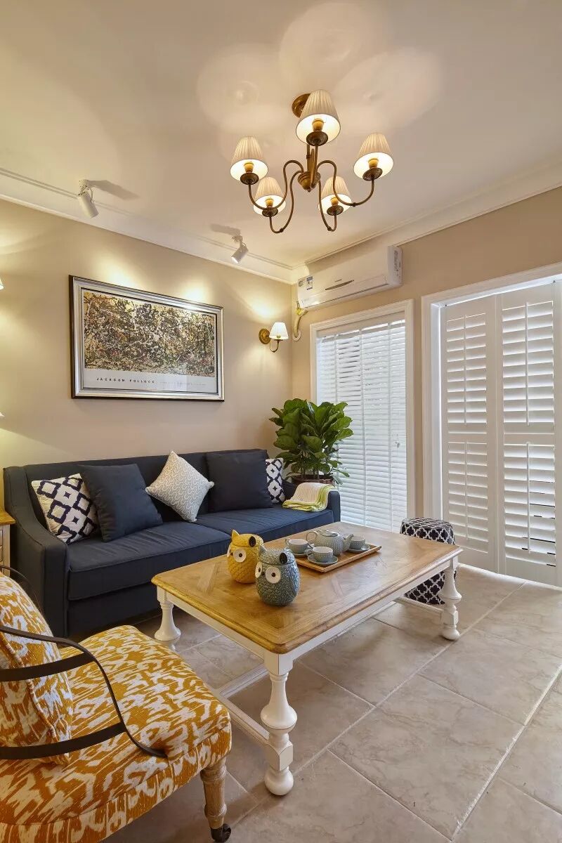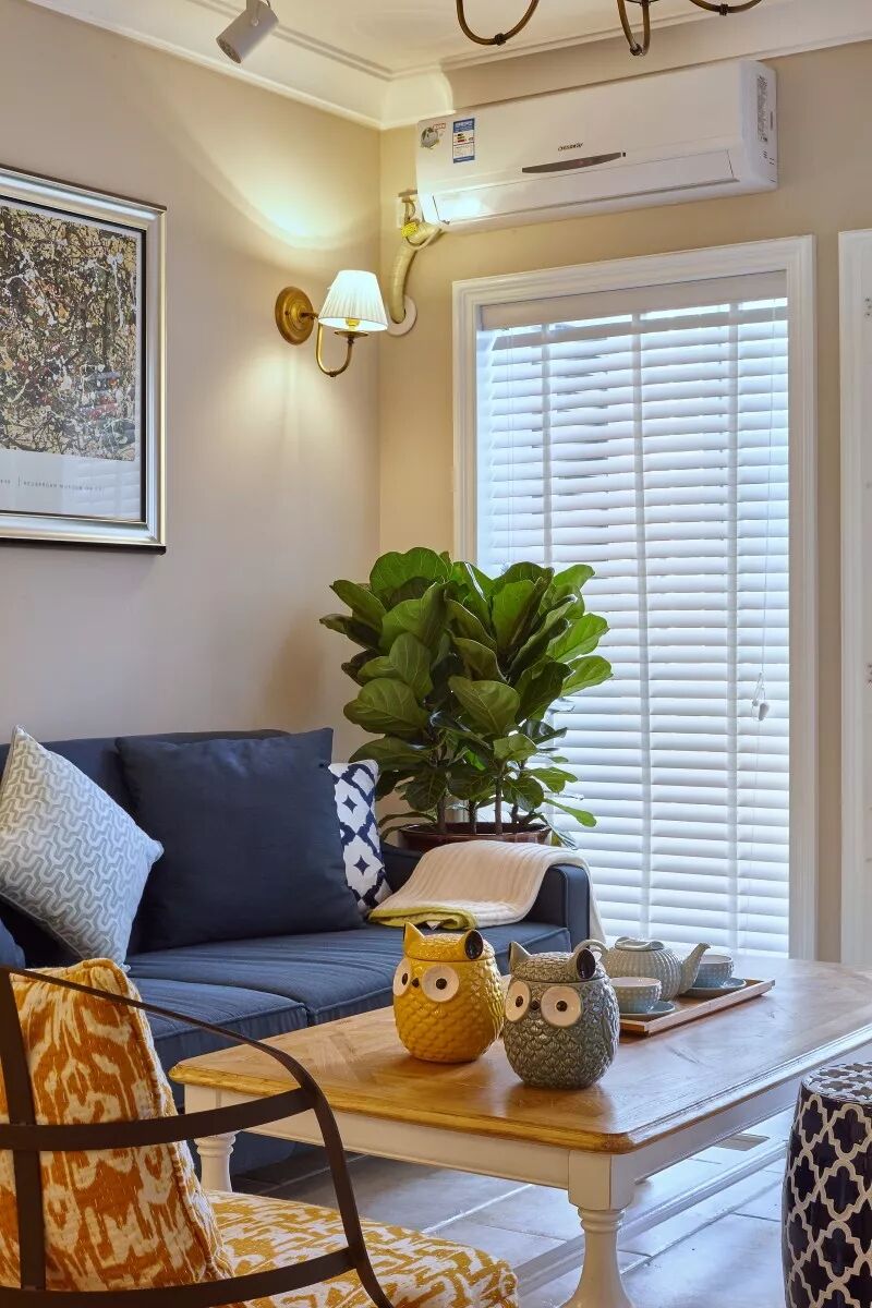 ▲蓝色的沙发俨然成为整个客厅一笔明亮的色彩,暖色调与冷色调的碰撞,在视觉上给人视觉上冲击的审美效果。