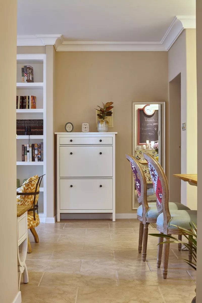 ▲入门处一个白色玄关柜倚墙而立,一面全身镜在等待着主人检视最美的自己。