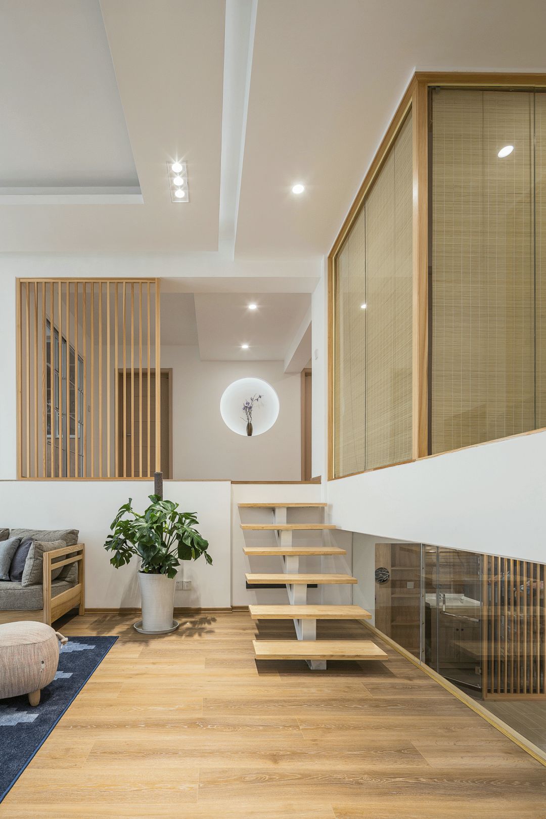 这是一个200㎡的日式装修风格的居室,整体以原木色为主,所有的家具清一色的原木,整体有一种返璞归真的复古感。