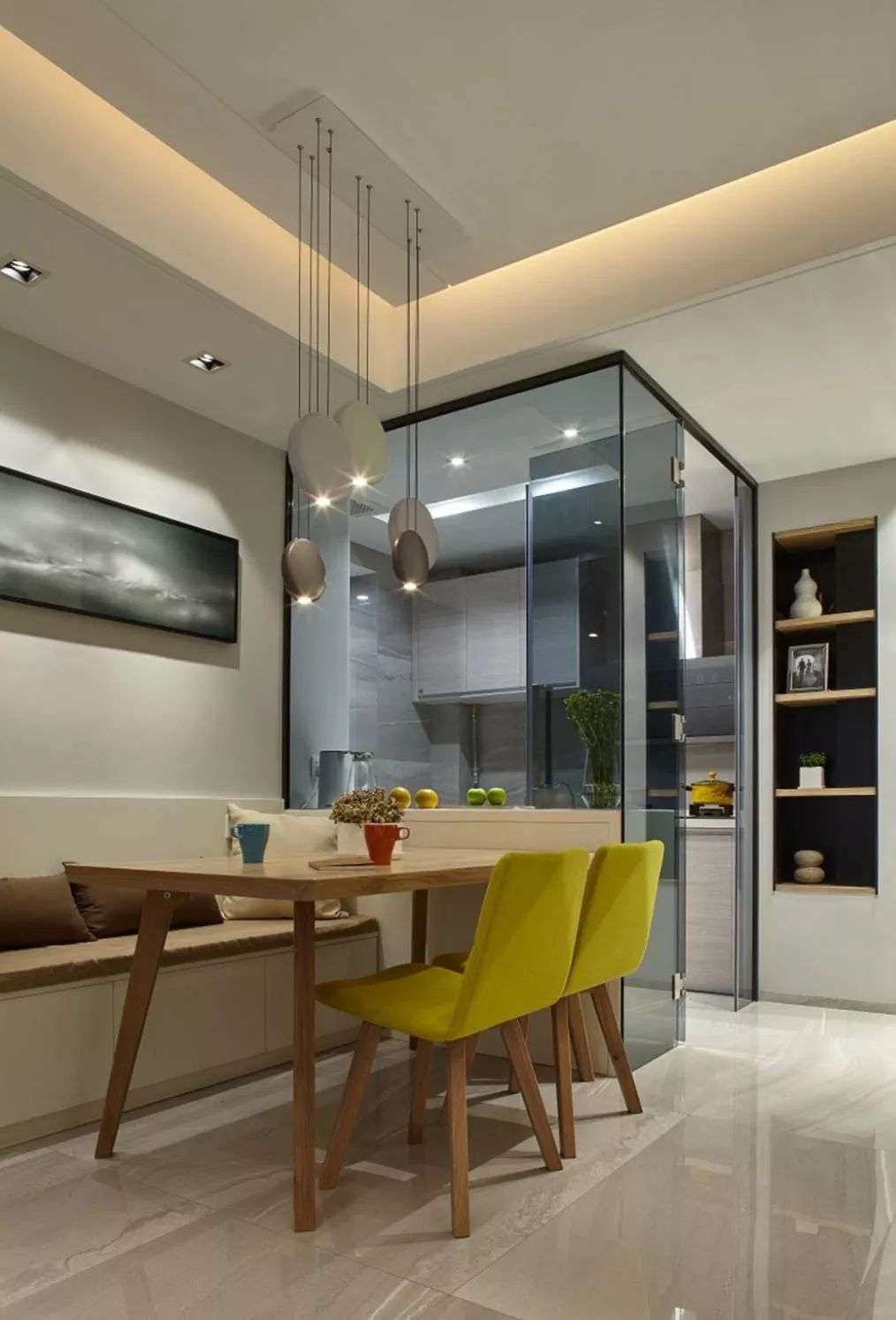 ▲ 实墙换成玻璃隔断,介于开放式和封闭式厨房之间