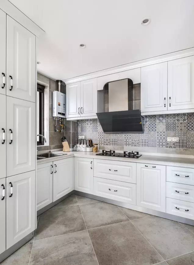 ▲ 因为厨房和它旁边的房间都比较小,所以在空间改动上面将它们打通,让厨房和餐厅合为一体。这样一来,空间看上去更大更宽敞,采光也比以前好了。白色橱柜中间的墙面贴了小花砖,让厨房看起来干净清新,而且还耐脏。