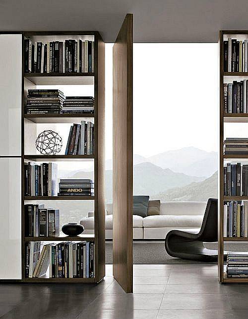 在大户型套间的结构中,各种分隔区间常常设置成旋转式的隐形门。营造私密空间之余,装饰性能爆表,更重要的是能大大提升空间的气质。
