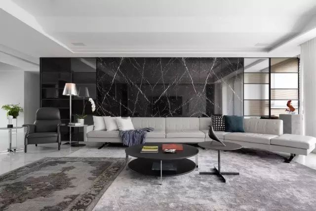 常规的布置方式,会把茶几放在对应沙发的位置,茶几周围占据了大部分空间,把茶几剔除或者用边几替代,这样有更多的活动空间。