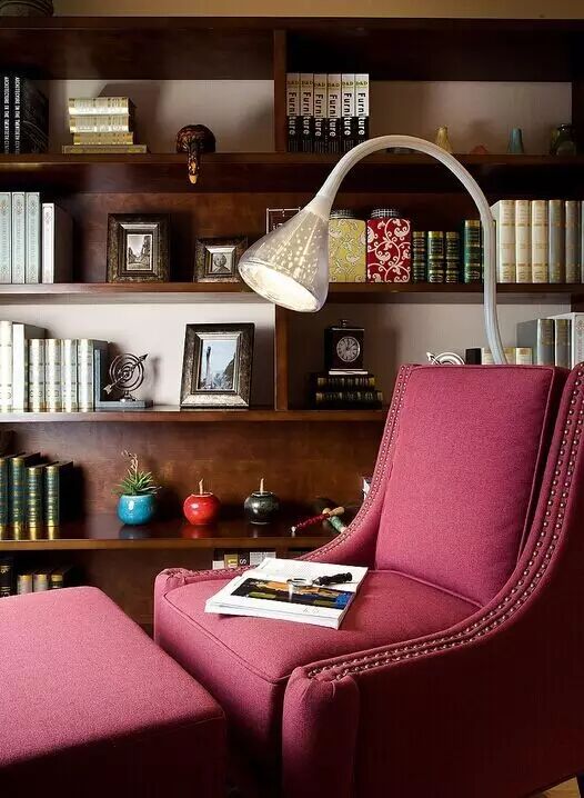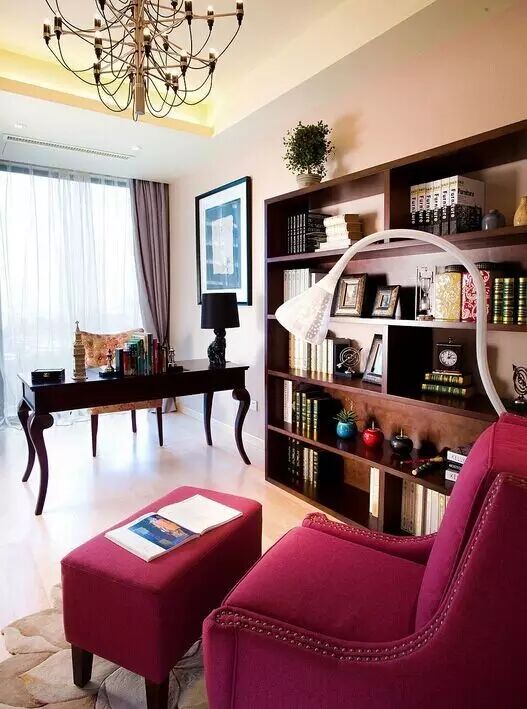 在书房这个非常能集中展示人物性格的空间,设计师更是将女主人知性的另一面呈现得淋漓尽致。