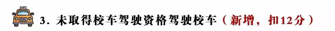 驾驶营运客车超载20%以上的(将校车列入其中),由扣6分调整为扣12分!营运车辆超载20%以上的车辆将受到扣除12分的处罚,其中除了出租车、长途客运车辆等常规营运车辆外(不含公交车),在新规则中还加入了校车。超过额定乘员百分之二十或者违反规定载货的,处500元以上2000元以下罚款。