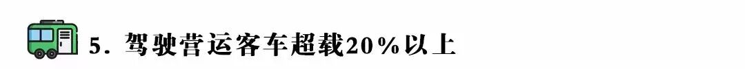 ● 驾驶营运客车(不包括公共汽车)、校车载人超过核定人数未达20%的,或者驾驶其他载客汽车载人超过核定人数20%以上的。
