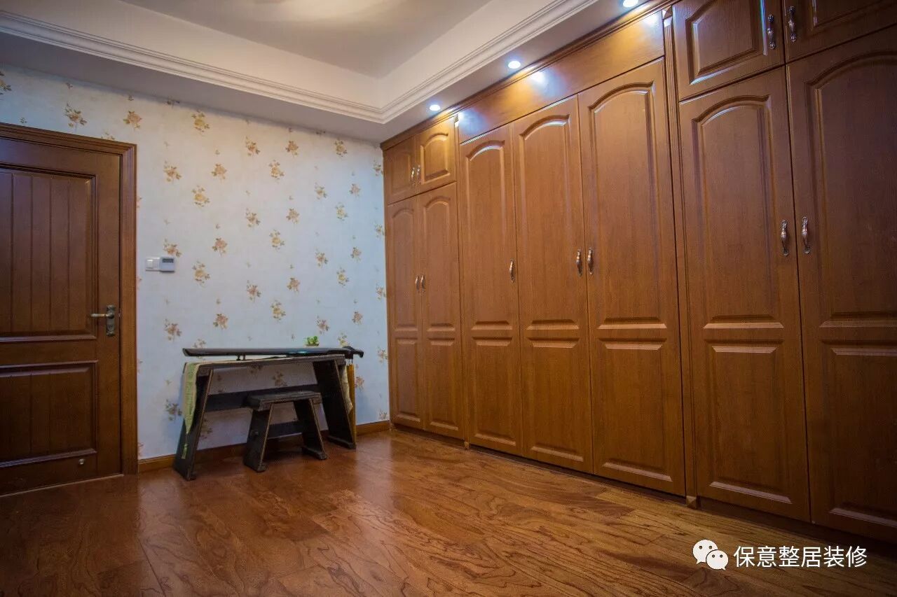 美式风格以宽大,舒适,杂糅各种风格而著称,这些元素也正好迎合了时下住户对生活方式的需求,即:有文化感、有贵气感,还不能缺乏自在感与情调感。本案采用了大量木质家具和原木色元素,每个房间都一气呵成,整体有种永不过时的既视感。更值得一提的是设计者对空间利用率的用心,几乎能打柜子的地方都打了柜子,整个屋子被给予了非常大的存储空间,这样的设计给居住者的方便美观不言而喻,非常具有实用性。