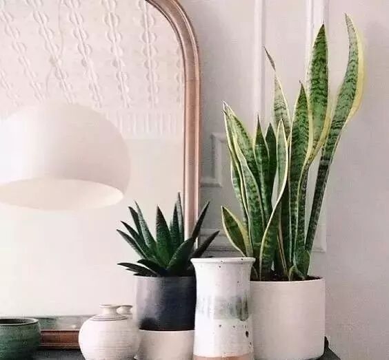 比如可以放芦荟、虎尾兰和条纹十二卷等,它们在夜间能够吸收二氧化碳,并释放出氧气,特别适宜摆设在卧室里。