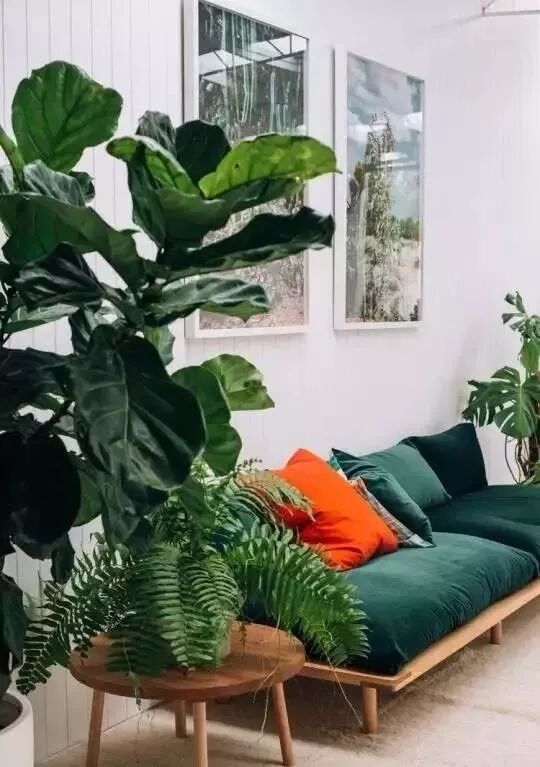 在客厅角落或者沙发旁边,站友们可以选择一些大型的绿叶植物,比如说琴叶榕、橡皮树这种观叶植物,还有量天尺等,垂直形态不仅能增加家里的空间感,还能净化空气。