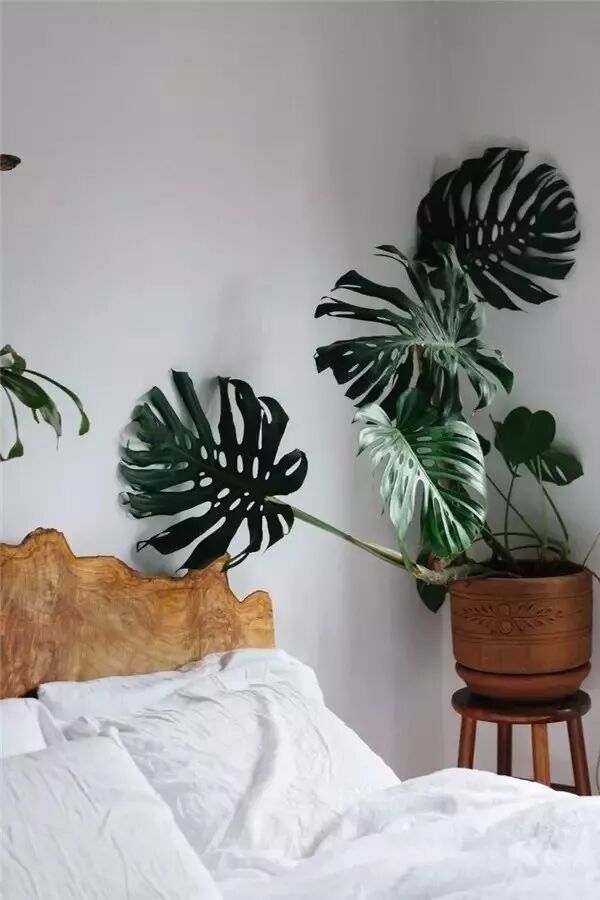 卧室床头放植物十分美好,但象君想提醒各位,无论放什么植物,卧室植物忌多。虽然植物可以吸收二氧化碳、甲醛等,但是大部分植物,在晚上是进行呼吸作用的(吸收氧气,释放二氧化碳)。所以一般2~3 盆最合适,多了反而无益。