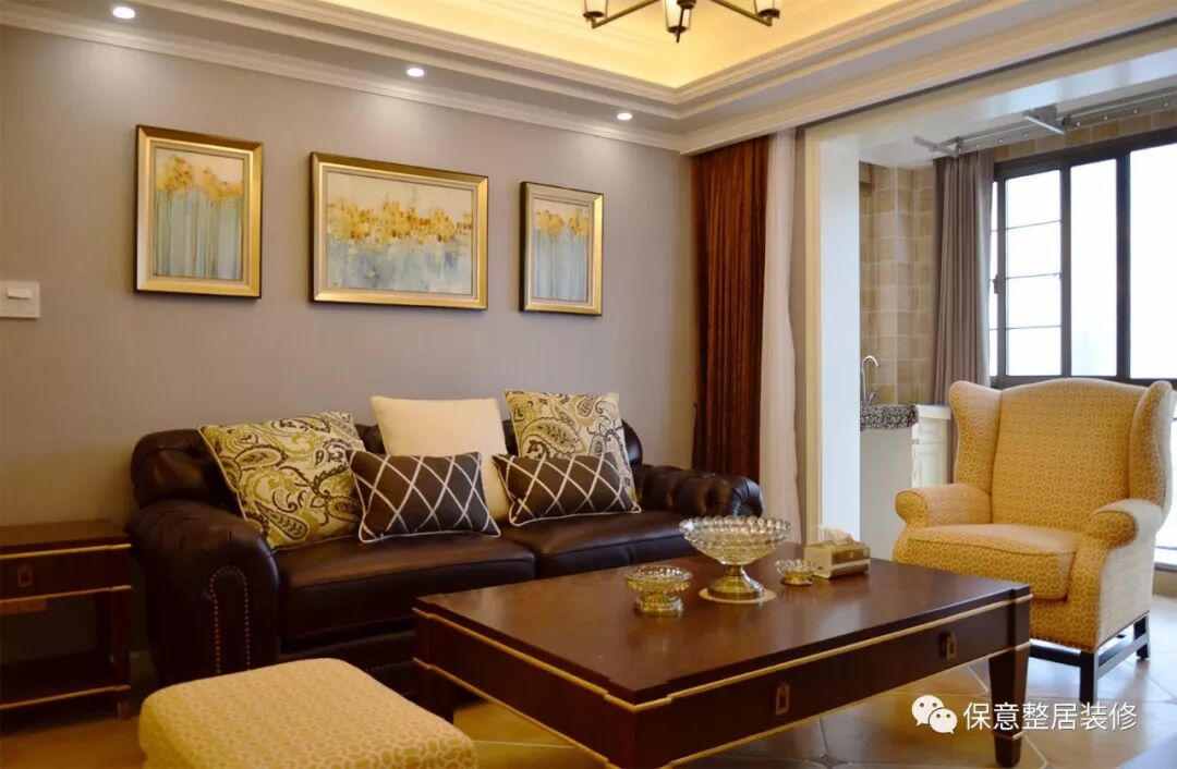 简美风装修在考虑了功能性的同时,又结合了过多修饰和约束的美式,因为整个装修会给人一种自在和随意的气息,看起来很舒适,又相比会显得独特一些。而在空间布局上也比较简单,在软装材质和颜色搭配上尽量统一。如同色同套的沙发、茶几、餐椅,给人沉稳的感觉。同时,挂画、抱枕、插花又用一抹亮眼的黄色来挑起色彩的跳跃感。