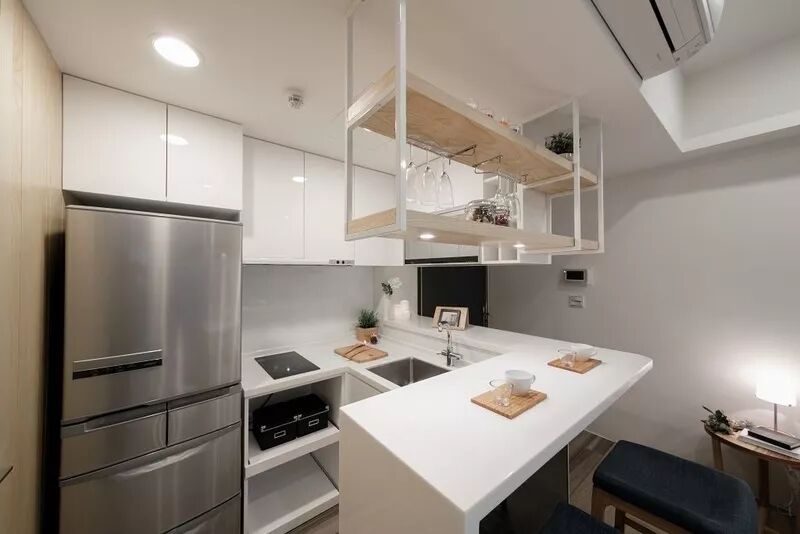 客厨一体,岛台设计。虽然面积很小,但满满都是高级感~