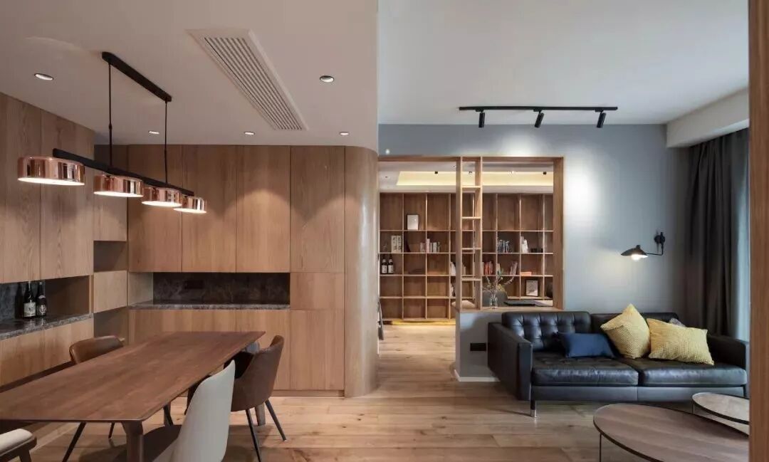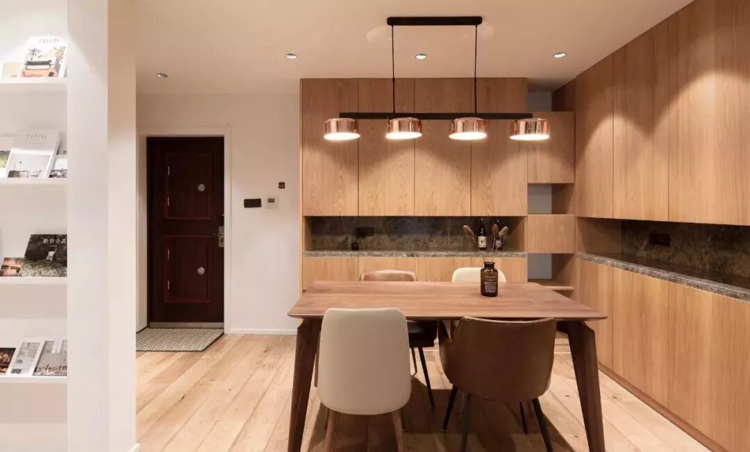 ▲ 建筑面积87平,使用面积64平,业主是一名日企单身白领,设计师为他量身打造温暖,质感小窝,入户玄关柜,厨房,照壁,后砌隔断墙将餐厨动线作自然分隔。