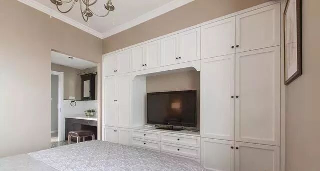 主卧的墙面做了内嵌式的柜子,节省不少空间。