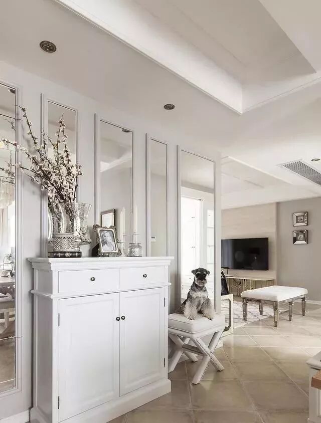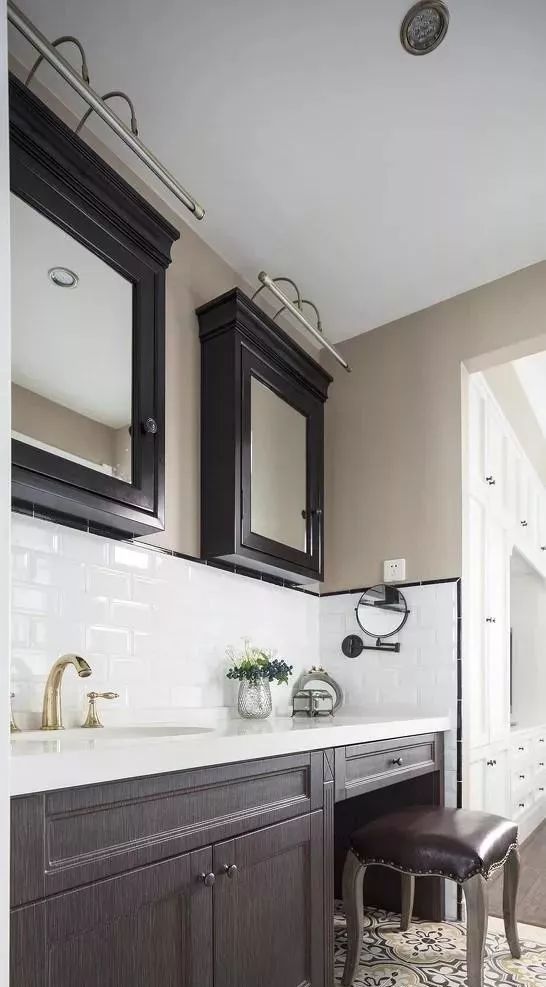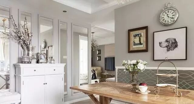 新家装修融合了美式的自然脱俗和法式的精致典雅,通过低纯度的色彩,做旧的家具饰品,加上石材、镜面、金色的点缀,宁静而又精致,看得我好羡慕,多想自己也有这样一套婚房。