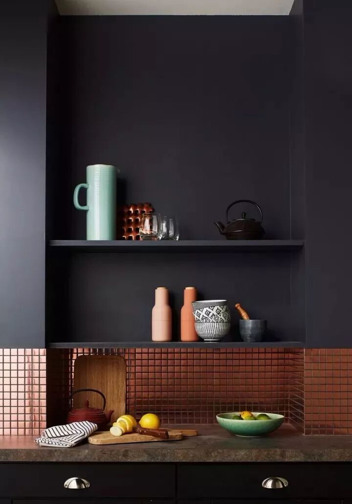 彩色厨房的灵感来自于大自然界的中性色,比如粘土、橡木、铜、金、指甲花和生姜等,都可以为时尚厨房提供更多的配色选择。