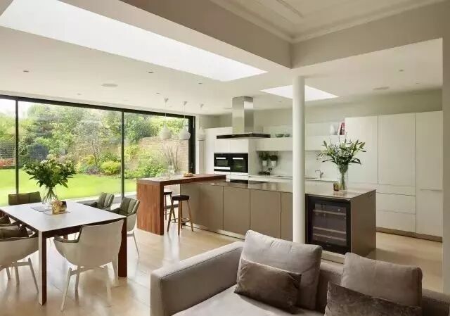 在开放式厨房逐渐被大众所接受并喜爱时,统一厨房区域与客厅区域的家具风格就尤为重要,许多家具厂商就选择配套生产了许多客厅家具,以保持客厅与厨房风格的一致性。