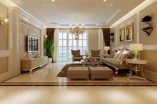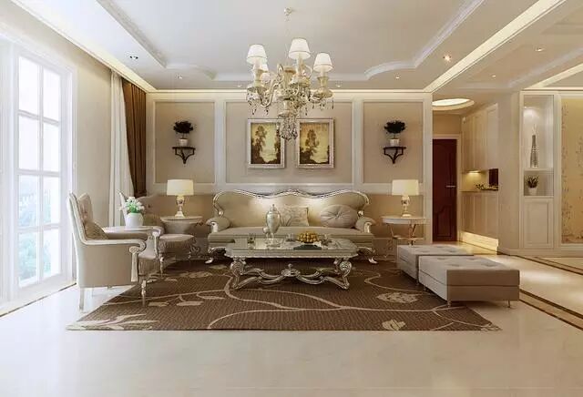 客厅高档大气,大气的吊顶设计,华丽的欧式家具,提高着整个客厅的档次。