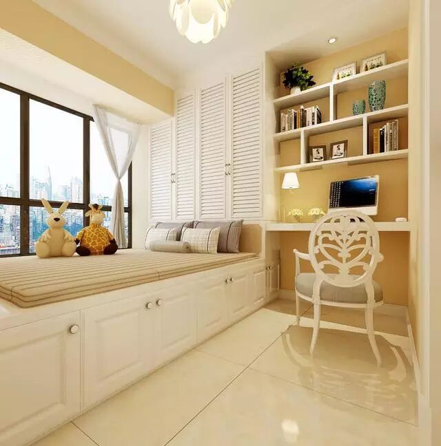 在书房还设计了一个榻榻米哦,累的时候可以舒服地躺着,让疲惫的身躯得到放松。