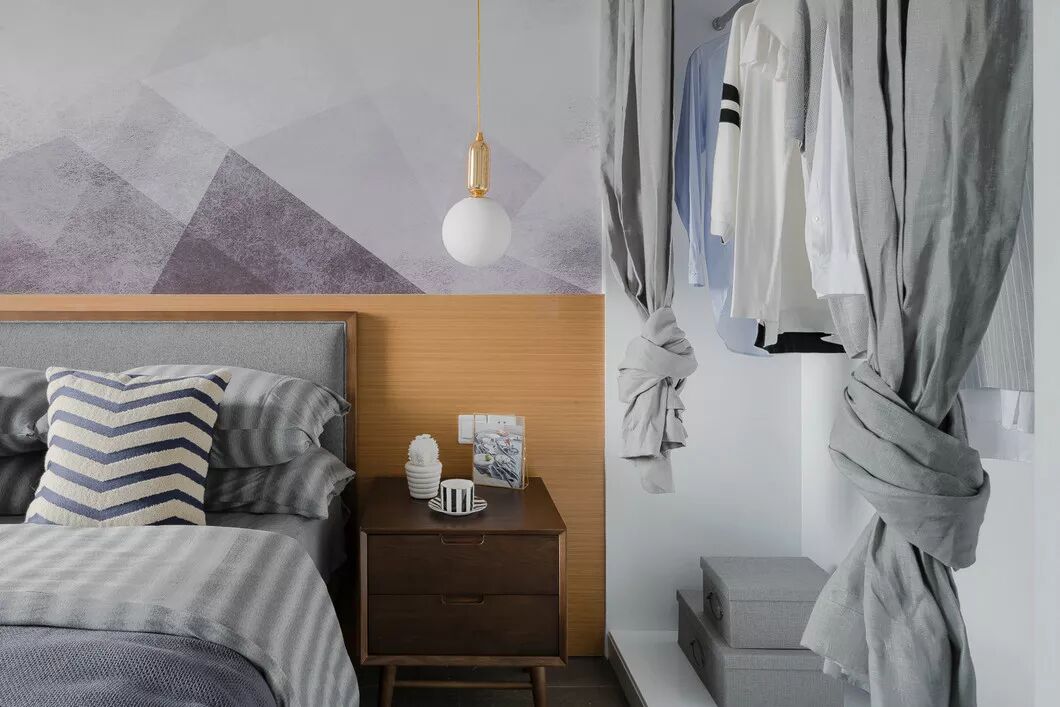 浅色卷起的衣柜帘子,随意而洒脱。只是要注意整理收纳,不然会显得有些杂乱。