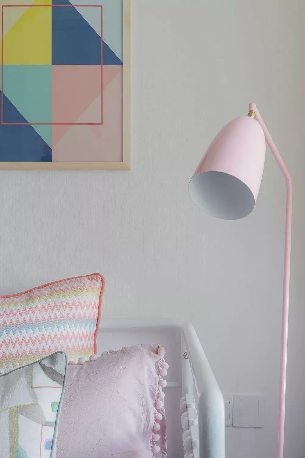 五彩的几何图形,趣妙横生,粉嫩嫩的颜色,等待着公主的降临,橙色调的窗帘,让空间丰富多彩。