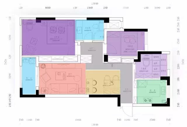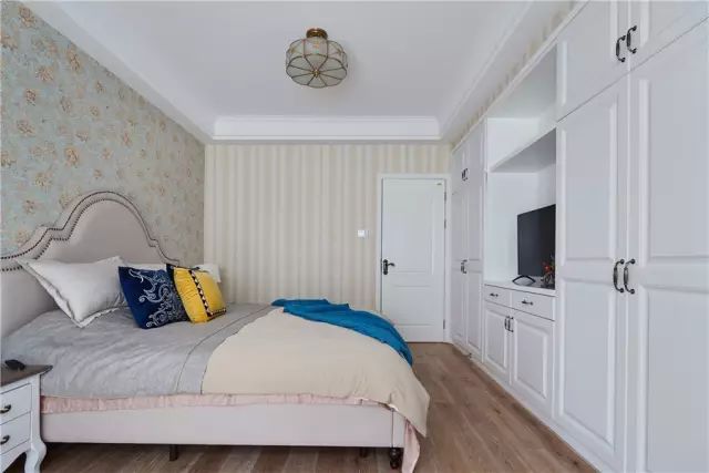 床尾的大面积衣柜,提供了丰富的收纳储物空间;