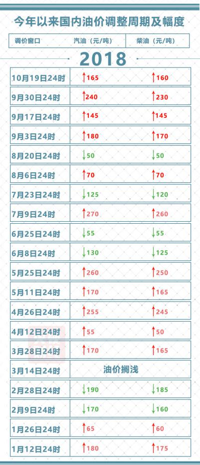 年内油价变动一览:13涨6跌1搁浅