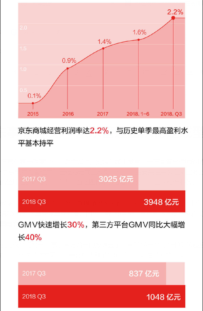 据京东财报数据显示,京东2018年第三季度净收入达到了1048亿元,净利润达到了30亿元,净利润同比大大增加200%创下单季新高。同时,截止9月份,京东Plus会员已经超过1000万人,号称中国电商行业最大规模的付费会员。