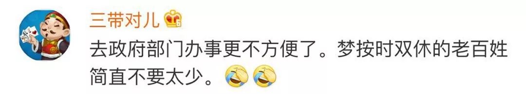 但也有网友认为:这样办事就更不方便了,并自嘲“连双休都没有”
