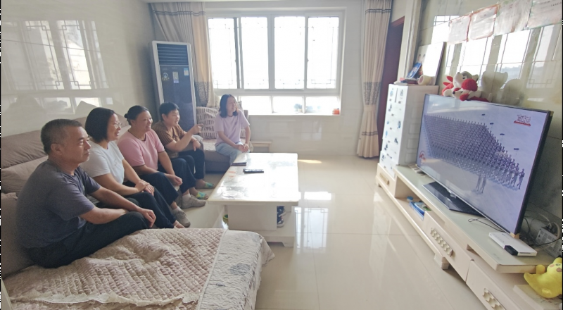 石冬杰父母及亲属在家中一同观看直播。