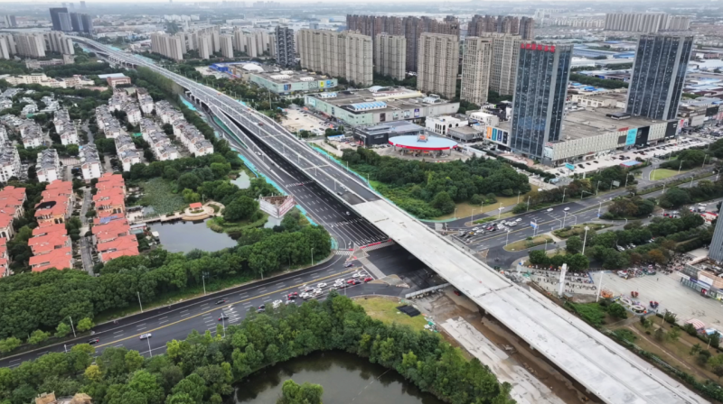 与西线紧密相连的南线工程(新泾东路—苏虞张—南二环快速化改造工程)同样进展迅速。目前,南线高架桥面已实现全线贯通,项目建设进入最后冲刺阶段。据了解,该项目金港大道至东二环苏虞张互通路段的高架及地面道路已于10月20日17时开放保通,为市民出行提供了新的便利。“项目整体进度已超过80%,金港大道到长安南路段正在进行桥面附属设施施工和沥青摊铺,地面道路建设也在全面推进。”孙明皓补充道。
