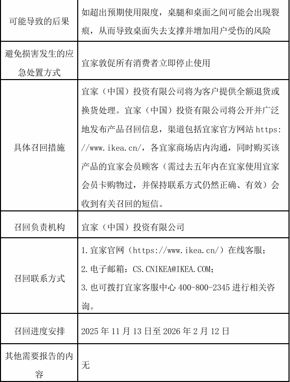 近日,据上海市市场监督管理局发布信息,宜家(中国)投资有限公司自2025年11月13日至2026年2月12日,召回2024年1月1日至2024年1月7日生产的宜家IKEA牌FLISAT福丽萨特儿童桌,共计170件。
