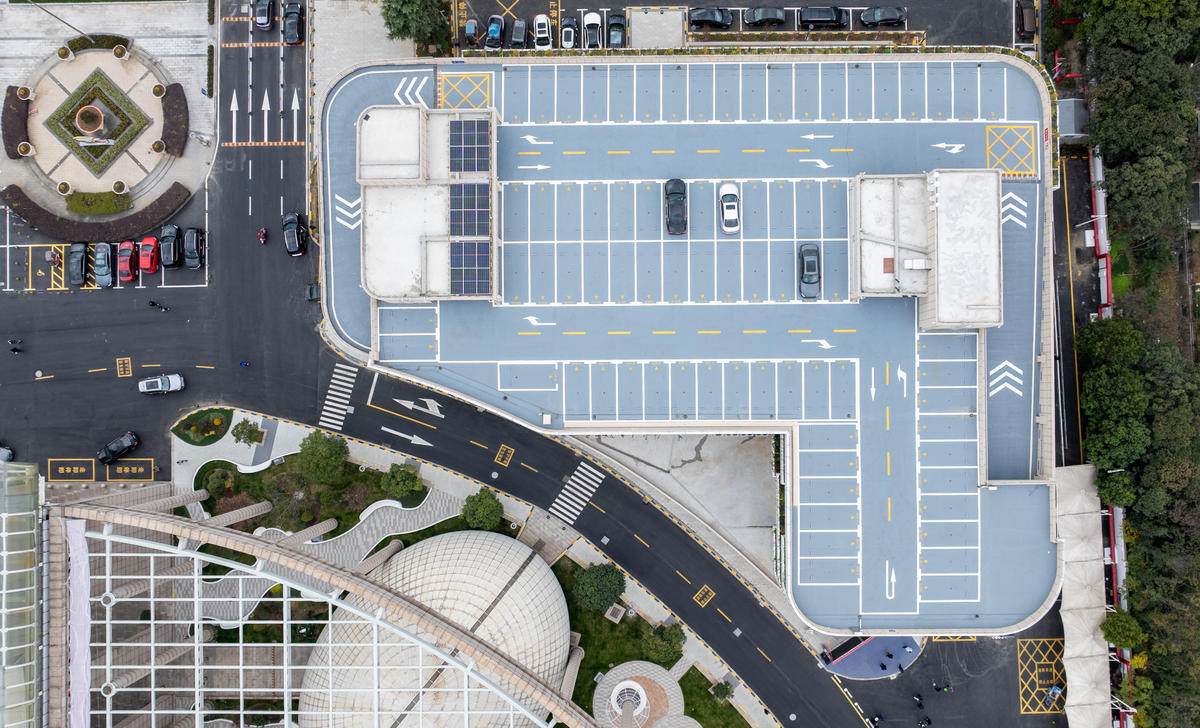 记者驾车缓缓驶入停车楼,只见内部空间通透明亮,丝毫没有传统地下车库的昏暗与压抑。整栋楼共有6层,采用地上5层、地下1层的布局。交通动线
