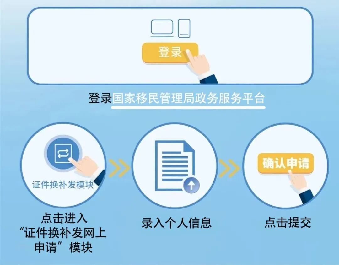 试点城市16周岁以上户籍居民(登记备案的国家工作人员和现役军人除外),符合有效期不足6个月、损毁、遗失、被盗或者普通护照签证页用完情形之一且之前banzheng时留存过本人的指纹,可以通过国家移民管理局政务服务平台网上申请换发补发普通护照、往来港澳通行证、往来台湾通行证,可不必前往出入境窗口办理。