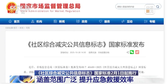 《社区综合减灾公共信息标志》国家标准2月1日正式实施,这是全国首次针对社区层面综合减灾公共信息标志的统一规范。