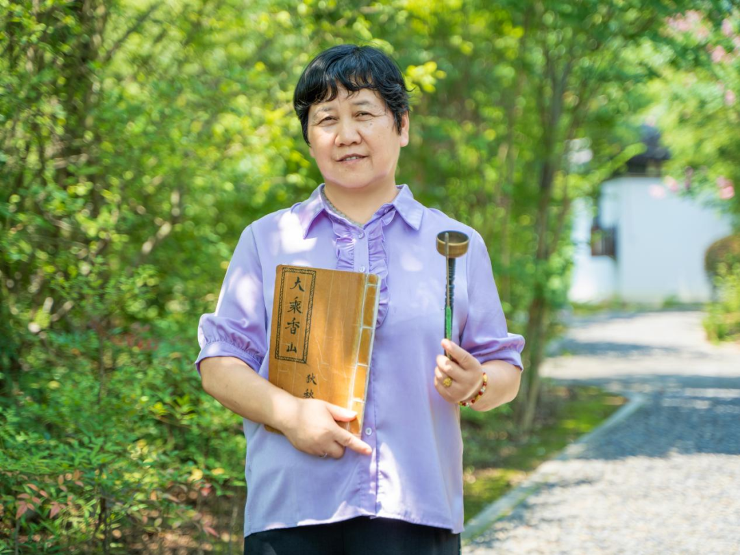 狄秋燕,女,1965年生于江苏张家港,河阳宝卷代表性传承人。她生于河阳宝卷讲唱世家,父亲狄建新是深谙吴地民俗的民间艺人,尤擅以画笔勾勒宝卷仪式中的佛像宝塔,琴弦上的调子透着吴地韵味,以声腔传唱千年文脉。